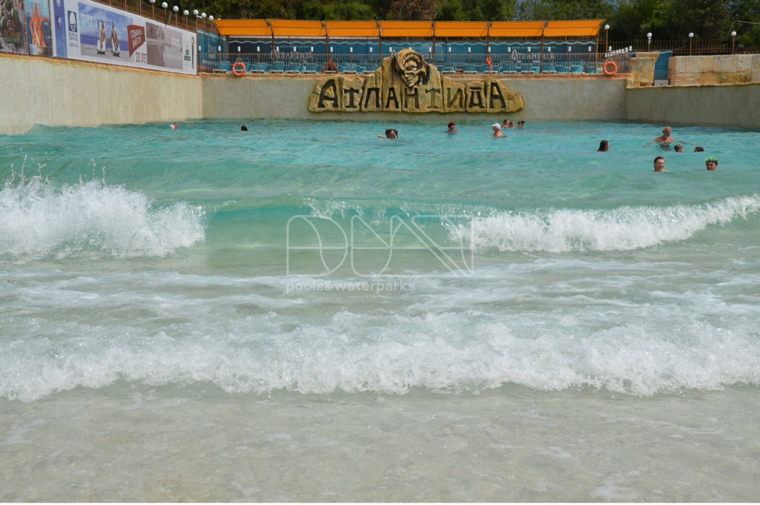 Волновой бассейн площадью 2000 м² с искусственным пляжем и разнообразными типами волн высотой до 2-х метров будет радовать любителей морского отдыха. Вода в бассейне поступает непосредственно с Черного моря. На территории аквапарка находится также комплекс водных горок, от спокойных до экстремальных. Общая протяженность водных спусков составляет 830 метров. Все это делает аквапарк Атлантида идеальным местом для отдыха с семьей или друзьями.