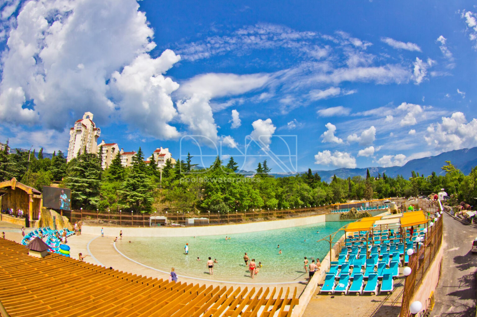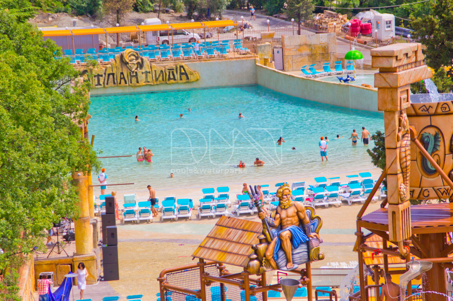 Важнейшее событие 2015 года на рынке строительства бассейнов и аквапарков Украины, а может даже и стран СНГ – открытие аквапарка “Атлантида”. Отделка бассейнов выполнена по технологии PebbleArt с использованием натуральной гальки. Для поддержания качества воды используются электролизные установки, что гарантирует безопасность и комфорт посетителям аквапарка.