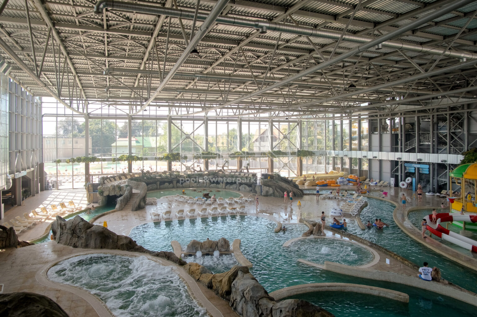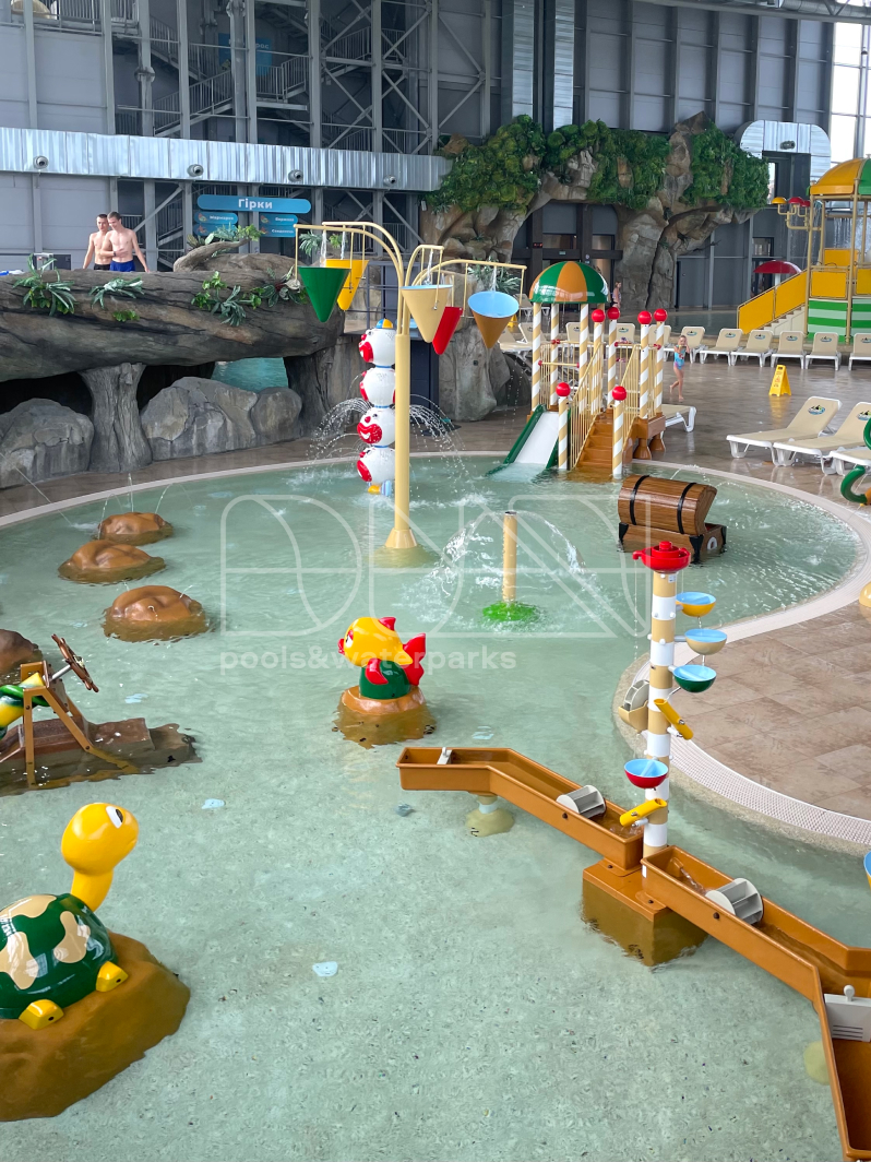 Каждый уголок аквапарка Карпатия красиво оформлен. Профессиональные художники тщательно разработали индивидуальные декорации из бетона, создавая уникальную атмосферу на каждом шагу.