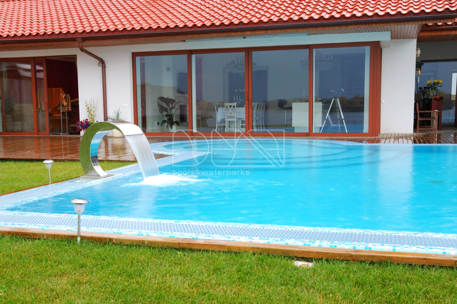 Благодаря качественному оборудованию обеспечивается безупречное качество воды и её чистота. Система подогрева воды позволяет наслаждаться купанием в любое время года, а автоматическое дозирование препаратов для очистки воды минимизирует необходимость в уходе за бассейном.