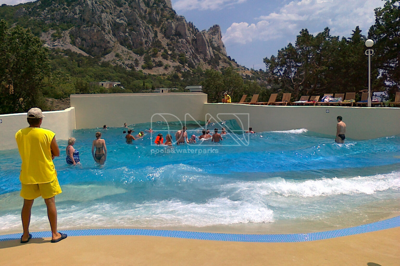 Построенный нами переливной бассейн – это не просто сооружение для плавания, это истинное произведение инженерной мысли и дизайна. Расположенный в аквапарке “Голубая лагуна” г. Симеиз, он является первым в Украине волновым бассейном, который привлекает внимание не только своими техническими характеристиками, но и визуальной привлекательностью. С огромной площадью в 490 м2 и объемом в 540 м3, бассейн наполнен морской водой, обеспечивая посетителям ощущение находиться у берега настоящего моря. Интеграция в природный ландшафт и гармоничное сочетание с окружающей средой делают его неотъемлемой частью релаксационной зоны.